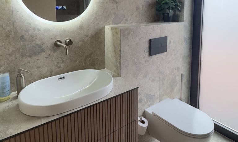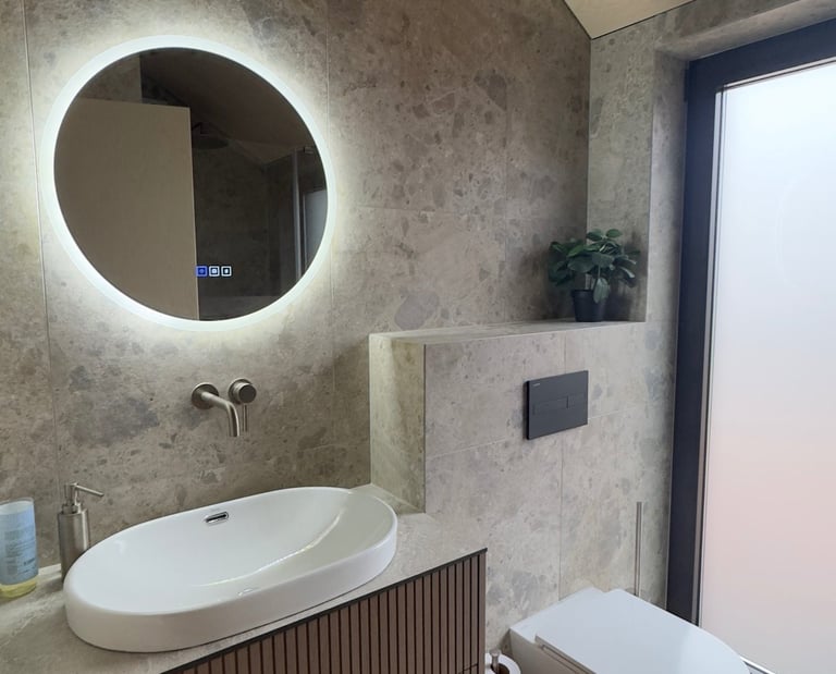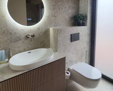 Our Italian stoneware tiles offer a high-end, durable finish for both interior and exterior applications. We use the Eterna Collection by Ragno, known for its natural stone aesthetics combined with modern performance.